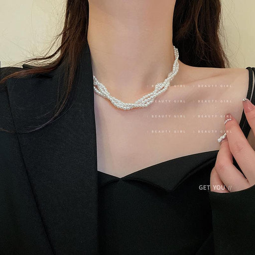 Multilayer Twisted Necklace Pearl Clavicle Chain