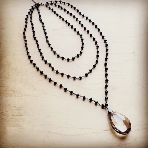 View full detailsThis Faceted Glass Beaded Triple Strand Layering Necklace with Pendant showcases a timeless, elegant, and classic design. The faceted glass beads a...