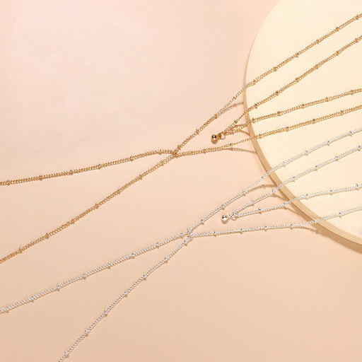 Double Layer Tassel Long Bead Chain Choker Necklace