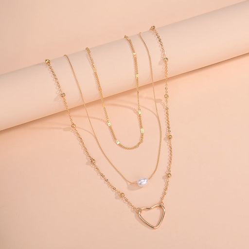 Sweet Double Layered Imitation Pearl Heart Pendant Necklace