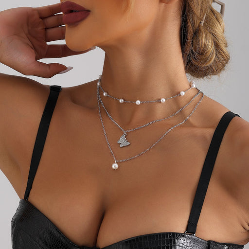 Rhinestone Multilayer butterfly Choker Chain Necklace