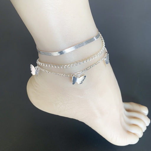 Figaro Chain Geometric Anklet Women Butterfly Tassel Multilayer Foot Chain