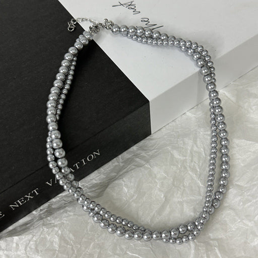 Gray Glass Pearl Necklace Vintage Twisted Pearl Choker