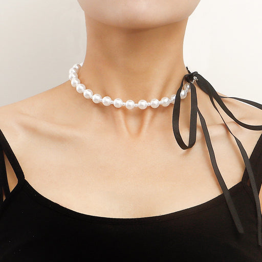 Vintage Long Bow Pearl Beaded Chain Choker DIY Lace