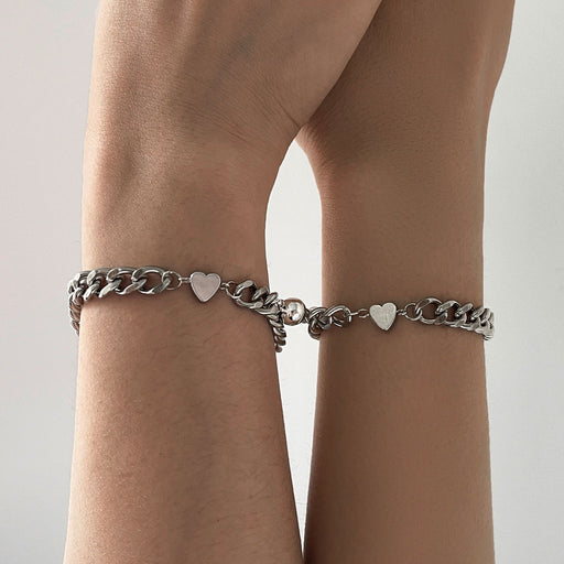 2 Pcs/set Couple Lover Bff Alloy Magnetic Cuban Bracelet