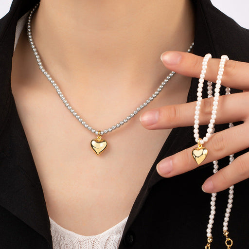Heart Pearl Beads Chain Choker Necklaces