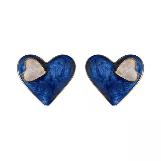 Elegant Opal Love Heart Four Leaf Clover Stud Earrings