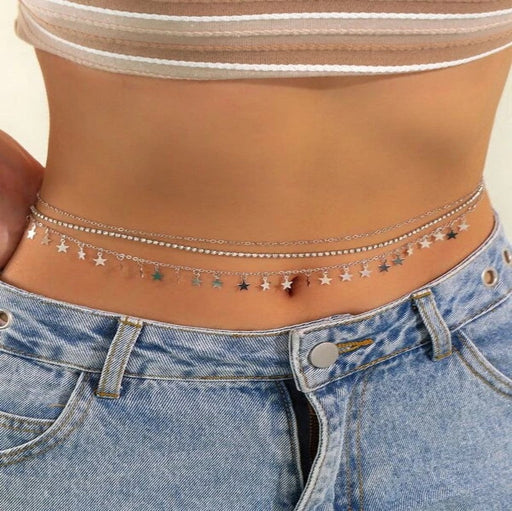 Geometric Rhinestone Star Pendant Tassel Belly Waist Chain for Women