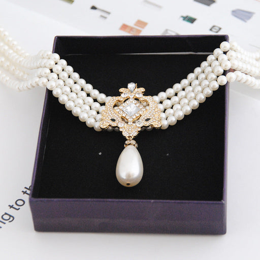 Multi-layered Pearl Necklace Exaggerated Rhinestone Sweet Bride Necklace
