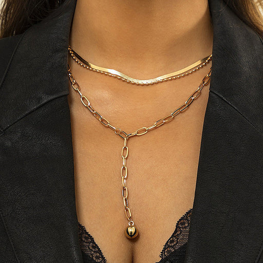 Round Bead Chain Flat Snake Chain Multi-layer Necklace
