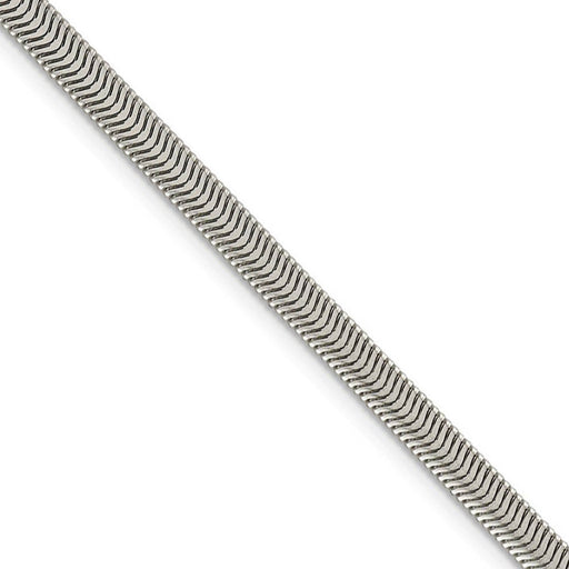 View full detailsA simple but elegant style featuring a flat oval link design made from polished sterling silver. This solid snake chain necklace is approximately 4...