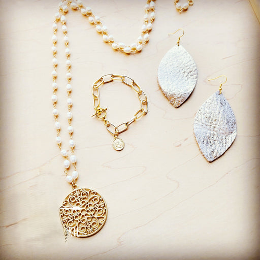View full detailsThe Jewelry Junkie combines the fun-loving spirit that bohemian jewelry possess and the classic beauty of the pearl in this necklace. The end produ...