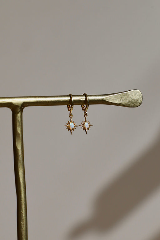 Opal star on gold plate huggie earwires
