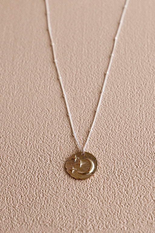 View full details18" SILVER SATELLITE CHAIN WITH BRONZE MOON AND STAR CHARM (22X18)