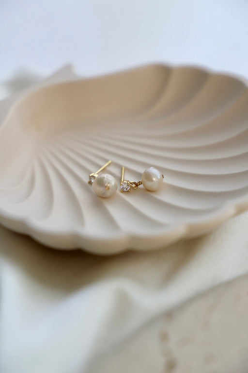 View full detailsThe CZ Pearl Drop Earrings are the definition of natural elegance. Featuring an organic shaped freshwater pearl that dangles from a simple cz stone...