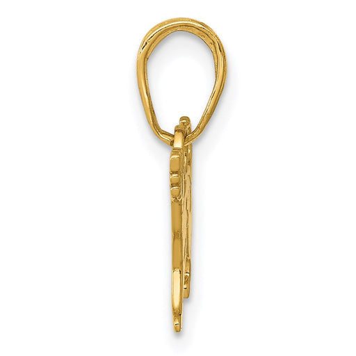 View full detailsA lovable golden bow-wow with plenty of pup personality featuring an energetic textured dog designed from 14k yellow gold. This polished flat penda...