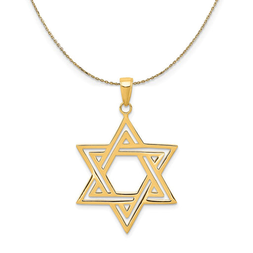 This six-point star is the central symbol for Judaism. Crafted from 14 karat gold featuring a diamond-cut and satin finish. Pendant measures 5/8 In...