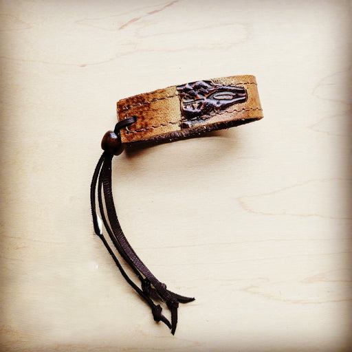 View full detailsShow off your boho chic style with this women's leather cuff bracelet! This piece of genuine leather cuff jewelry features two leather strips ...