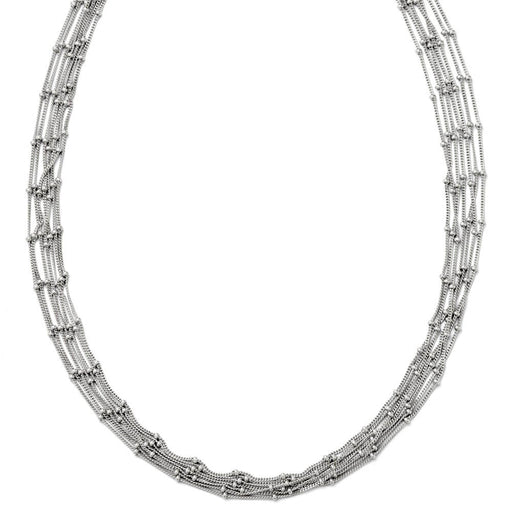 View full detailsAn elegant layered design featuring seven 1mm curb chain strands enhanced with 2mm beads fashioned from polished sterling silver. It is finished wi...