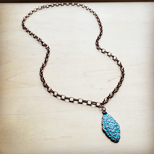 View full detailsElevate your style with our Long Copper Layering Necklace featuring a delicate filigree pendant with burnished finish. This boho jewelry piece ad...