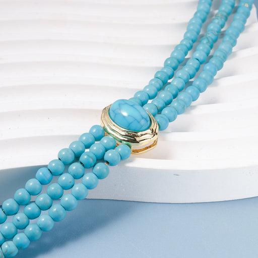 Geometric Beaded Necklace Simple Turquoise Multi-layer