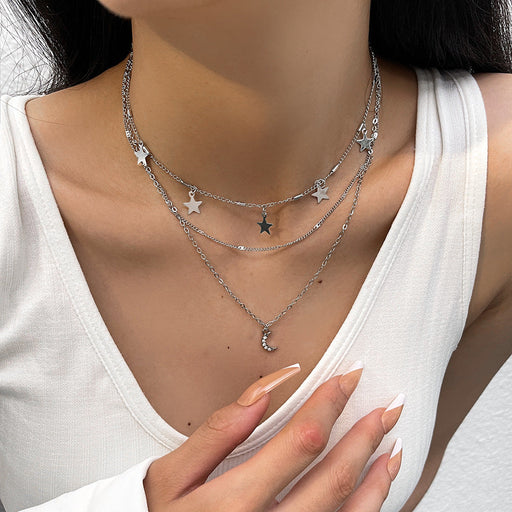 Multi-layer Star Pentagram Tassel Moon Pendant Chain Necklace