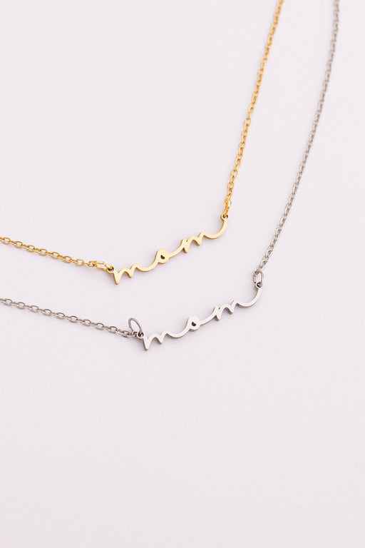 View full detailsCursive "Mom" Name Necklace - Designed in our Branded Rose and Clay Font Tarnish Free & Waterproof - Shower, Sweat and Pool Safe Hypoallergen...