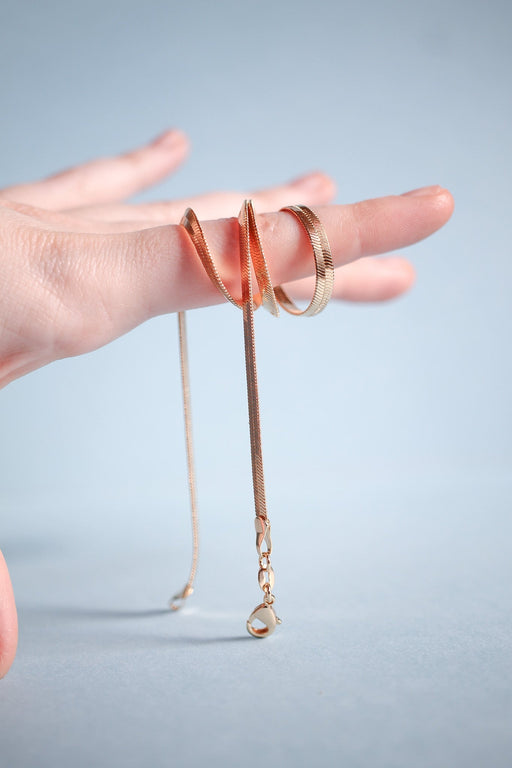 The Hestia Necklace is the perfect pick to add some subtle sparkle to your everyday outfit! Crafted from 18k gold filled chain in a 4mm herringbone...