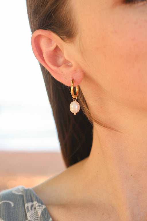 View full detailsBest seller! Available in Stainless Steel and 18k Gold Plated Stainless Steel Features Real Freshwater Pearls Lightweight 15mm hoop Hypoallergenic...