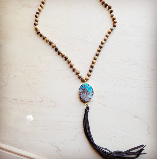 View full detailsThe Jewelry Junkie combines the fun-loving spirit that bohemian jewelry possess and the classic beauty of the stones in this necklace. The end prod...