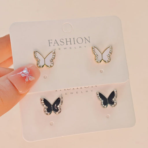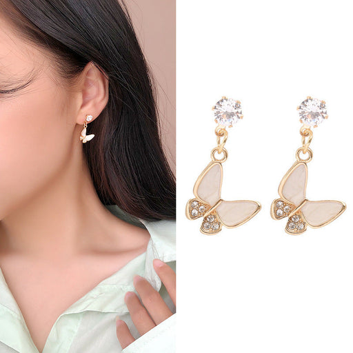 Butterfly Pendant White Crystal Hoop Jewelry Earrings