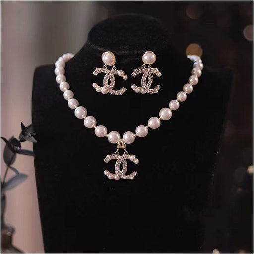 Elegant Women Wedding Pearl Pendant Earrings Necklace Sets