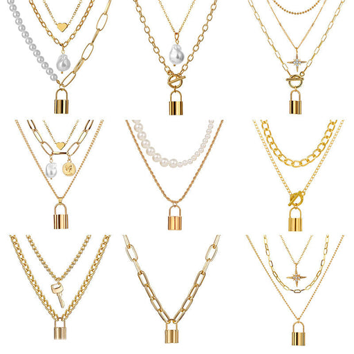 Heart Star Charm Paperclip Chain Choker Necklace Layered Lock Pendant