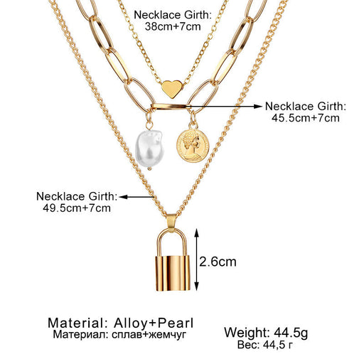 Multi Layers Chain Necklace Metallic Color Heart Pendant