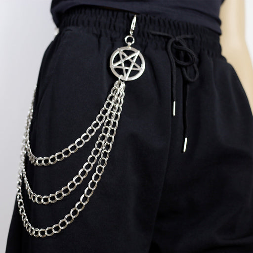 Punk Pants Chain Pentagram Keychains for Men Women Jean Trouser Biker Chains