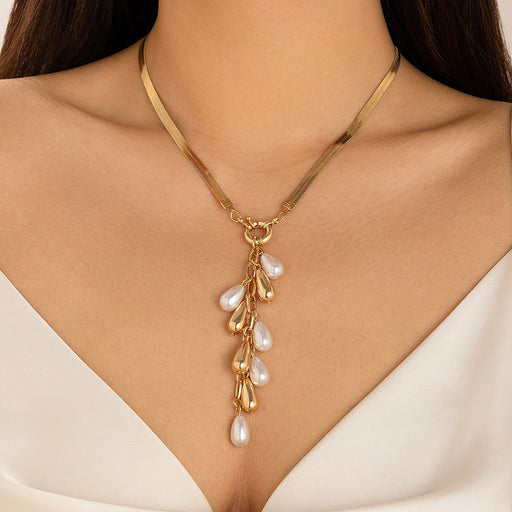 Snake Chain Necklace Retro Pearl Tassel