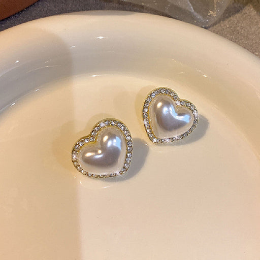 Romantic Elegant Heart Pearl Stud Earrings