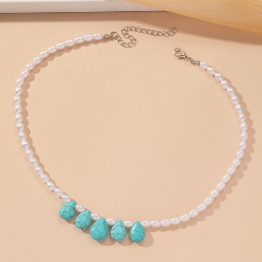 Bohemian Holiday Style Water Drop Turquoise Pendant Pearl Necklace