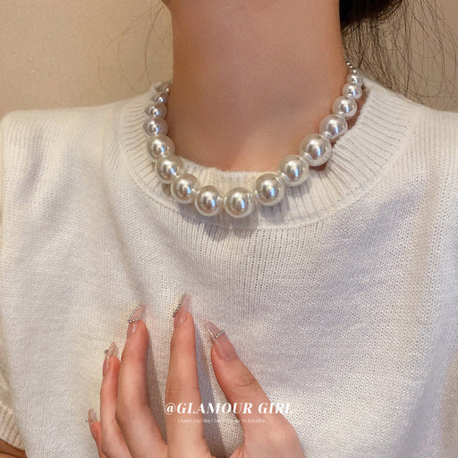 Vintage Beaded Chain Necklace Ethnic Imitation Big Pearl