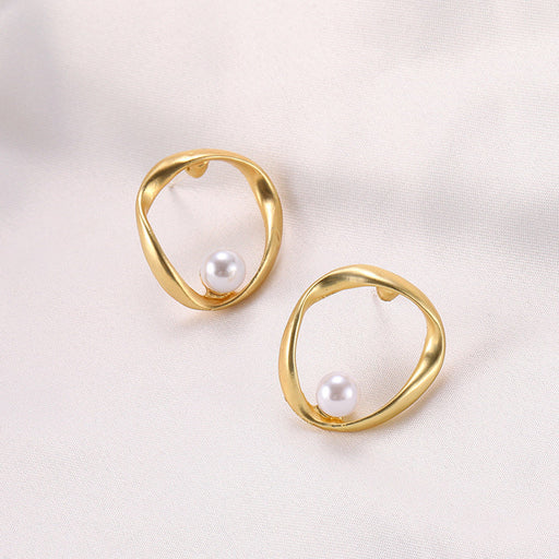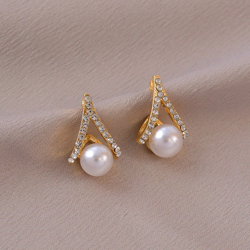 White Imitation Pearl Crystal Rhinestone Stud Earrings