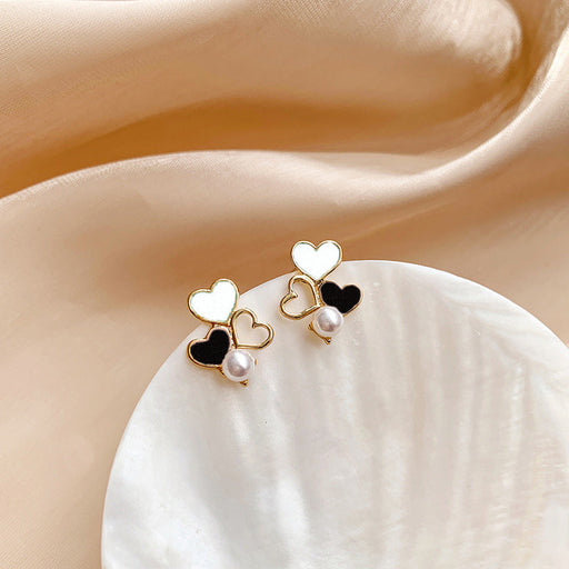 Pearl Double Clavicle Chain Stone Round Pearl Earring Necklace Set