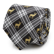 If red and green tinsel isn't your deal, try something a little more elegant to get you in the holiday mood. This 100% silk tie features a simple black and white plaid pattern with metallic gold stags that catch the light. Perfect for showing everyone you love the holidays... but not enough to wear an ugly sweater.