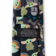 Playfully designed in fun cartoon pattern, Mando and Grogu, also known as The Child and Baby Yoda, create the design on our Mando Grogu Navy Men's Tie. Motifs of Mando in his guild armor with Grogu in his arms or in his pram create a cute spin on the stars of the Mandalorian. It's the perfect gift for dad and lovers of the Star Wars universe. Our tie will maintain its shape and hold a sturdy knot thanks to the durable yet stylish 100% Polyester. Wear alone or pair with our other Mandalorian accessories to create a modern look. Officially licensed by LucasFilm LTD.