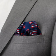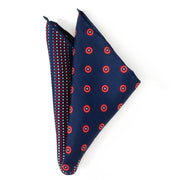 Our Captain America Shield Navy Pocket Square celebrates Captain America, Marvel's first Avenger. Captain America's shield, set in a diagonal dot pattern, alternates with squares featuring both a dot and stripe design in Captain America's signature colors. Imbued with the power of superhero craftsmanship, our 100% Silk pocket square is built to withstand the mightiest battles while making sure you'll always maintain your sharp, heroic look. This pocket square pairs perfectly with our matching Captain America Navy tie. Officially licensed by Marvel.