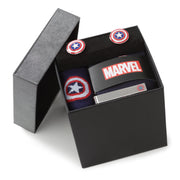 The ultimate gift set for the ultimate Captain America fan. We've assembled our greatest heroes for this set, including socks, cufflinks, tie bar, and 100% silk tie, all featuring the classic Captain America shield you know and love. This set might not be made of vibranium, but it's still pretty cool. Officially licensed by Marvel.