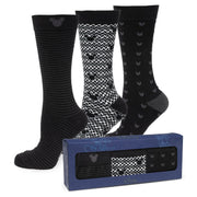 Wear a little Disney magic on your feet with our Mickey Mouse Silhouette Black Gift Set. The set includes our Mickey Silhouette Stripe, Mickey Silhouette Motif, and Mickey Silhouette Chevron socks with our Black Mickey Silhouette Lapel Pin. It's perfect for adding a little whimsy to a professional or formal setting. Experience enchantment with our expertly crafted gift set. It's built to last, infused with Disney magic, and ready to accompany you on whimsical adventures. Officially licensed by Disney.
