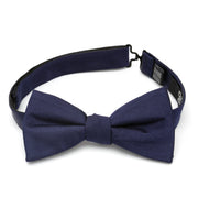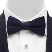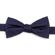 A deep navy bow tie is a staple accessory for any man's formal wardrobe. Our 100% bow tie is pre-tied for ease of dressing and comes with a fully adjustable neck band to fit every size. Pair with a crisp white or navy pocket square to complete the look.
