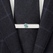 Celebrate the Seattle Kraken Hockey Team with this tie clip bearing the Kraken's logo! This tie clip features the Kraken's logo at the end of the stainless steel clip. A rich navy blue tentacle slithers up the sea and ice blue of the S to a pop of red. Represent this hockey team with their logo holding your tie in place. Officially licensed by the NHL.