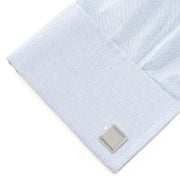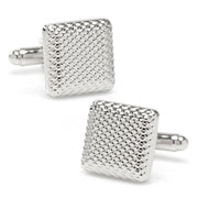 Complete your style essentials wardrobe with our elegant Silver Textured Square Cufflinks. They feature a shiny textured finish and softly curved corners. Designed with a bullet backing for ease of dress. The expert craftsmanship of our plated base metal cufflinks ensures long-lasting durability.