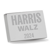 This sleek and modern lapel pin features a polished silver finish and a sturdy rectangular design. Customizable with your chosen candidate’s campaign, it offers a stylish yet subtle way to show your support. The sleek surface adds a refined touch to any outfit, making it perfect for political enthusiasts, collectors, or as a thoughtful gift for a fellow supporter. A standout addition to any accessory collection, this lapel pin seamlessly blends sophistication with personal expression.